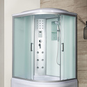 Производитель: River Модель: Dunay 110/80/46 MT - Закрытая кабина - угловая - двери раздвижные - гидромассаж - тропический душ Описание