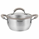 Материал: Высококачественная нержавеющая сталь 18/10 Основной цвет: Стальной Технология: - Силиконовый обод позволяет крышке закрываться бесшумно, предотвращает сколы при падении - Тройное вштампованное, а затем вплавленное дно Внутреннее покрытие: Без покрытия Внешнее покрытие и отделка: Матированная полировка Толщина стенок: 0,6 мм Толщина дна: 4,0 мм Индукционный диск: 140 мм Материал крышки: Термостойкое стекло Аксессуары: Оригинальная конструкция ручек - комбинация стали и силикона Тип крепления