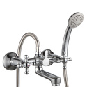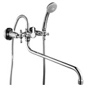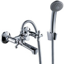 Термостат - Нет, Тип - Двухзахватный, Назначение - Универсальный, Присоединительный размер - 1\2", Форма излива - Традиционная, Количество монтажных отверстий - 2, Материал корпуса - Латунь, Длина излива - 417, Донный клапан - Нет, Поворотный излив - Да, Покрытие - Хром, Тип подводки - Жесткая, S-образные эксцентрики - Есть, Встраиваемый - Нет, Цвет - Серебристый, Аэратор - Есть, Комплектация - Держатель душевой лейки, душевой шланг, ручной душ