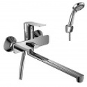 Комплектация - Держатель душевой лейки, душевой шланг, ручной душ, Материал корпуса - Латунь, Термостат - Нет, Назначение - Для ванны и душа, Покрытие - Хром, Тип - Однозахватный, Присоединительный размер - 1\2", Коллекция - RS, Тип подводки - Жесткая, Количество монтажных отверстий - 2, S-образные эксцентрики - Есть, Форма излива - Традиционная, Поворотный излив - Да, Донный клапан - Нет, Аэратор - Есть, Цвет - Серебристый, Высота - 16.8, Длина излива - 370, Ширина - 19.4