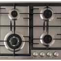 Поверхность: варочная панель • Тип поверхности: газовая • Рабочая поверхность: нерж.сталь • Число конфорок: 4 • Установка: независимая • Газовые конфорки: всего - 4 (1 конфорка "Двойная корона") • Газ-контроль конфорок: есть • Тип управления: механическое • Переключатели: поворотные • Электроподжиг: есть, автоматический • Размеры: 580x510 мм • Размер ниши для встраивания: 560x480 мм • Цвет: панель - серебристый