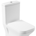 Тип: унитаз-компакт, напольный • Чаша: воронкообразная, прямоугольная (скошенные углы) • Слив: универсальный • Подвод: нижний • Материал: санфарфор