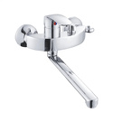 Смеситель для ванны Цвет: Хром Материал: Латунь Картридж: керамический Ручная лейка: 1 режим Душевой шланг: 150 см растягивающийся шланг Технология: Испанская Гарантия: 5 лет