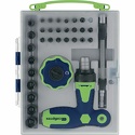 Комплектация- Отвертка Т-образная реверсивная- Удлинитель 130 мм- Гибкий удлинитель 140 мм- Переходник для торцевых головок 1/4"- Торцевые головки: 5, 6, 7, 8, 9, 10, 11, 12, 13- Биты: SL3, SL5, SL6, PH0, PH1, PH2, PZ2, T5, T6, SPAN 6, H4, H5, H6, TW 2, TW3, TA2, TA3, TT10, TT15, TT20, TT25, TT30