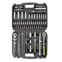 Комплектация- Ключ трещоточный 1/4" (6,35 мм), 45 зубьев, с реверсом- Ключ трещоточный 1/2" (12,7 мм), 45 зубьев, с реверсом- Отвертка-держатель 1/4" (6,35 мм)- Вороток Т-образный 1/4" (6,35 мм)- Удлинитель 1/4" (6,35 мм) 50 мм, 100 мм- Удлинитель 1/2" (12,7 мм) 1250 мм, 250 мм- Гибкий удлинитель 1/4" (6,35 мм) 140 мм- Кардан 1/4" (6,35 мм), 1/2" (12,7 мм)- Свечные торцевые головки (метрические) 1/2" (12,7 мм) с резиновой вставкой 16 мм, 21 мм- Многофункциональный адаптер, соединяться с удлинителем 3/8"Fx1/2"M (9,53 – 12,7 мм)- Головки торцевые 1/4" (6,35 мм), шестигранные 4 мм - 14 мм- Головки торцевые 1/4" (6,35 мм), шестигранные удлинённые 6 мм - 13 мм- Головки торцевые 1/2" (12,7 мм), шестигранные 10 мм - 32 мм- Головки торцевые 1/2" (12,7 мм), шестигранные удлинённые 14 мм - 19 мм- Ключ имбусовый H1,5, H2, H2,5- Биты с торцевыми головками 1/4" (6,35 мм) Н, Т, SL, PH, PZ- Переходник для бит 5/16"-1/2"- Адаптер 1/4 шестигранник на 1/4 квадрат- Биты-вставки 5/16" (7,93 мм) Н, Т, SL, PH, PZ- Кейс