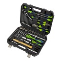 Набор: 76 шт • Ключи: комбинированные, шестигранные • Головки: 6-ти гранные головки, свечные • Ключей-трещоток: 2 шт • Хранение: пластиковый кейс