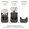 Группа: 1/2/3 (9-36 кг) • Крепление: трехточечными ремнями • Внутренние ремни: пятиточечные, съемные • Размеры: 43x69x54 см • Регулировка наклона спинки: есть, 3 положения • Боковая поддержка: есть • Зажимы для фиксации внешнего ремня: есть • Регулировка высоты внутренних ремней: есть, 3 уровня • Регулировка высоты подголовника: есть, 6 уровней • Материал каркаса: пластик • Вес: 4.7 кг