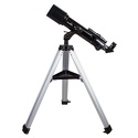 Короткофокусный ахроматический рефрактор с апертурой 70 мм. На оптические поверхности нанесено многослойное просветляющее покрытие. Телескоп снабжен оптическим искателем с 6-кратным увеличением. В комплект входят окуляры 10 мм и 25 мм. Труба устанавливается на азимутальную монтировку с алюминиевой треногой.