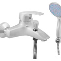 Назначение: ванна+душ • Конструкция: однорычажный • Монтаж: вертикальный • Клапан: керамический • Материал: латунь, покрытие - хром • Подводка: жесткая • Монтажные отверстия: 2 отверстия • Форма излива: традиционная • Душевая лейка в комплекте: есть • Держатель для душевой лейки: настенный держатель • Аэратор: есть