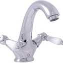 Тип: для умывальника, двухвентильный • Монтаж смесителя: настольный • Струя: высота 111 мм, глубина 142 мм, наклон 34 °