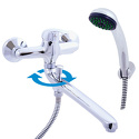 Назначение: универсальный • Конструкция: однорычажный • Монтаж: вертикальный • Материал: латунь, покрытие - хром • Подводка: жесткая • Монтажные отверстия: 2 отверстия • Форма излива: традиционная • Душевая лейка в комплекте: есть • Держатель для душевой лейки: настенный держатель • Аэратор: есть • Эксцентрики в комплекте: есть • Донный клапан в комплекте: есть