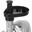 Реверс: есть • Производительность: 2.2 кг/мин • Вес: 3.5 кг • Насадки-решетки: Есть, 3 штуки • Насадки-терки: Есть • Насадки для шинковки: Есть • Прочие насадки: для приготовления кеббе, для приготовления колбас • Резиновые ножки: есть • Лоток для подачи продуктов: есть, пластик • Цвет корпуса: серебристый • Материал корпуса: пластик • Защита от перегрузки: есть • Максимальная мощность: 1800 Вт