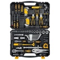 КомплектацияГоловки торцевые FLANK 1/2" - (10,11,12,13,14,15,17,19,22,24,27,30,32 мм) - 13 шт. Головки торцевые FLANK 1/4" - (4,4.5,5,5.5,6,7,8,9,10,11,12,13 мм) - 12 шт. Головки торцевые свеченые 1/2" - (16,21 мм) - 2 шт. Вороток - отвертка 1/4" - (150 мм) - 1 шт. Шарнир карданный - (1/2",1/4") - 2 шт. Удлинитель для торцовых головок 1/2" - (125 мм) - 1 шт. Удлинитель для торцовых головок 1/4" - (75 мм) - 1 шт. Трещотка с быстрым сбросом 45 зубцов - (1/2",1/4") - 2 шт. Переходник для торцовых головок - (1/4" HEX х 1/4" SQ) - 1 шт. Биты 1/4" х 25 мм - (PH0 1,2.2,3;PZ0 1,2.2,3;SL3,4,4.5,5.5,6.5,8;T8,10,15,20,25,27,30,40;H1.5,2,2.5,3,4,5,6,8) - 32 шт. Биты 1/4" х 25 мм - (Double pin 4,8,6,10;TORQ 8,6,10;TX HOLE T8,10,15,20,25,27,30,35,40;Tri wing 1,2,3,4;HEX HOLE 2,2.5,3,4,5,6;HEX HOLE 5/64",3/32",7/64",1/8",9/64",5/32" - 32 шт. Магнитный битодержатель - 1 шт. Адаптер для бит - (1/4" SQ х 1/4" F HEX) - 1 шт. Тестер - (140 мм) - 1 шт. Молоток с фибергласовой ручкой 300 г -1 шт. Нож с сегментированным лезвием - 1 шт. Держатель для отверток для точных работ - 1 шт. Жала отверток для точных работ двухсторонние - (PH00;SL1.5,PH0-SL2.5;T4-H2,T7-H1.5) - 4 шт. Рулетка 3 м х19 мм - 1 шт. Плоскогубцы - (160 мм) - 1 шт. Кусачки - (160 мм) - 1 шт. Тонкогубцы - (160 мм) - 1 шт. Клещи переставные - (250 мм) - 1 шт. Зажим ручной - (240 мм) - 1 шт. Ключи комбинированные - (6,7,8,9,10,11,12,13,14,15,17,19) - 12 шт. Ключи имбусовые - (HEX H1.5,2,2.5,3,4,5,6,8,10) - 9 шт. Ключи имбусовые - (TORX T10,15,20,25,27,30,40,45,50) - 9 шт. Отвертки - (PH1 х 75 мм,PH2 х 100 мм,SL3 х 75 мм,SL5 х 100 мм,SL6 х 200 мм) - 5 шт. Отвертка с магнитным битодержателем - (180 мм) - 1 шт.