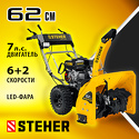Производитель: Steher Модель: GST-762 - самоходный - бензиновый двигатель 5150 Вт 7 л.с. - захват 62x54 см Описание