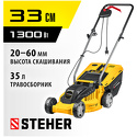 Производитель: Steher Модель: LM-33-1300 - роторная газонокосилка - электрический двигатель - 1300 Вт Описание