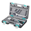 Комплектация- Ключ трещоточный 1/2.- Ключ трещоточный 1/4.- Головки торцевые 1/2: 14, 15, 16, 17, 18, 19, 20, 22, 24, 27, 30, 32.- Головки торцевые 1/4: 4, 4.5, 5, 5.5, 6, 7, 8, 9, 10, 11, 12, 13, 14.- Удлинитель гибкий отверточная рукоятка 1/4.- Ключи комбинированные: 8, 10, 11, 12, 13, 14, 17, 19, 22.- Кардан 1/2.- Кардан 1/4.- Удлинитель 1/2: 125 мм, 250 мм.- Удлинитель 1/4: 50 мм, 100 мм.- Адаптер для бит 1/4 -длина 25 мм.- Головки свечные 1/2: 16 мм и 21 мм;- Вороток Т-образный, 1/2, 1/4.- Биты с торцевой головкой 1/4 -длина 32 мм: Н - 3, 4, 5, 6, T8, T10, T15, T20, T25, T30, SL 4, 5.5, 7, PH1, PH2, PZ1, PZ2.- Адаптер 1/2 на 3/8.- Держатель для бит 1/2 на 5/16.- Биты 5/16: T40, Т45, Т50, Т55, SL8, SL10, SL12, PH3, PH4, PZ3, PZ4, Н - 8, 10, 12, 14.- Отвертка держатель для бит.