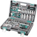 Комплектация- Ключ трещоточный 1/4.- Ключ трещоточный 1/2.- Головки торцевые 1/2" 10, 11, 12, 13, 14, 15, 16, 17, 18, 19, 20, 21, 22, 24, 27, 30, 32.- Головки торцевые 1/4" 4, 4.5, 5, 5.5, 6, 7, 8, 9, 10, 11, 12, 13, 14.- Головки свечные 21 мм и 16 мм.- Удлинители 1/2: 125 и 250 мм.- Удлинители 1/4: 100 мм и 50 мм.- Кардан на 1/2 и 1/4.- Вороток Т-образный 1/4.- Головка торцевая удлиненная 1/2 ” 14, 15, 17, 19, 22.- Головка торцевая удлиненная 1/4” 6, 7, 8, 9, 10, 11, 12, 13.- Бокорезы 175 мм.- Пассатижи 175 мм.- Переходник бит 1/4->1/4.- Переходник 1/2F - 3/8M.- Отвертка-держатель 1/4.- Отвертки SL6 x 100 PH2 x 100.- Биты Т10, Т15, Т20. SL3, SL4. PH1, PH2.