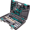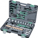 Набор: 56 шт • Ключи: шестигранные • Головки: 6-ти гранные головки, свечные • Ключей-трещоток: 1 шт • Хранение: пластиковый кейс