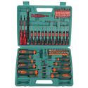 Комплектация- отвёртки: SL:3x75, 5x75, 6x100, 8x150 мм; PH:0x75, 1x75, 2x200, 3x150 мм;- держатель для бит 10x40 мм;- диэлектрические отвертки: SL4X100,PH1x100 мм;- отвёртки для точной механики: SL:2.0x50, 2.5x50, 3.0x50; PH:2.0x50, 2.5x50, 3.0x50;TORX: 6x50, 8x50, 10x50, 15x50, 20x50;25 бит: SL: 3, 4, 5, 6, 7 мм; PH: 0, 1, 2, 3 мм; PZ: 0, 1, 2, 3 мм; TORX: 10,15,20,25,30,40 мм; HEX: 2,3,4,5,5.5,6 мм;- гибкий вал 250 мм;- магнитный держатель для бит 60 мм;- тестер напряжения;- адаптер 50 мм;- ручка с магнитом;- торцевые головки: 5,6,7,8,9,10,11,12,13,5/32,3/16,1/4,5/16,11/32,3/8,7/16,15/32,1/2
