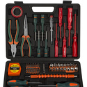 Комплектация- 18 головок: 4, 5, 6, 7, 8, 9, 10, 11, 12, 13, 9, 10, 11, 12, 13, 14, 15, 17 мм;- Тонкогубцы 160 мм;- Комбинированные плоскогубцы 160 мм; - Молоток 300 гр;- Нож;- Рукоятка с трещоткой для головок;- Удлинитель;- Адаптер;- 30 бит:TORX:10, 15,20,25,30,40 мм; PH: 0, 1, 2, 3 мм; PZ1:1, 2 мм; SL:4, 5, 6, 7,1/8, 3/16 мм; Hex:2,3,4,5,6, 3/32”, 1/8”, 5/32”, 1/4”;- 6 отвёрток для точной работы: PH:1, 03, SL:1.4, 2.0, 2.4, 3.0 мм;- Уровень;- Набор восьмигранных ключей 16 шт: 6, 5.5, 5, 4, 3, 2.5, 2, 10, 1.5, 1/6”, 5/64”, 3/32”, 1/8”, 5/32”, 3/16”, 7/32”, 1/4”;- Набор крепежа 87 предметов