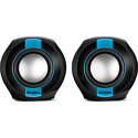 Звуковая схема: 2.0 • Суммарная мощность (RMS): 5 Вт • Материал корпуса колонок: пластик • Частотный диапазон: 100 Гц - 20 КГц • Линейный вход: стерео (mini-jack 3.5мм) • Пульт управления: проводной • Количество полос фронтальных колонок: 1 • Магнитное экранирование колонок: есть • Питание: от порта USB • Размеры фронтальных колонок (ШxВxГ): 75x75x75 мм • Вес фронтальной колоноки: 0.32 кг