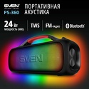 Производитель: Sven Модель: PS-360 - номинальная мощность 24 Вт - воспроизведение с USB - питание от аккумулятора Описание