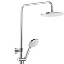 Устройство: душевая система • Ручной душ (душевая лейка): размер 120 мм, настройки 3 шт • Верхний душ (тропический): размер 215 мм, настройки 1 шт • Комплектация: ручной душ, верхний душ, стойка, шланг, крепление ручного душа, мыльница