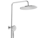 Устройство: душевая система • Ручной душ (душевая лейка): размер 121 мм, настройки 3 шт • Верхний душ (тропический): размер 300 мм, настройки 1 шт • Комплектация: ручной душ, верхний душ, стойка, шланг, крепление ручного душа, мыльница