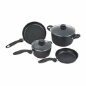 В наборе: кастрюли, ковш, сковородка, 4 шт • Размер: от 18 см, до 24 см • Объем: до 5.2 л • Материал: алюминий
