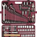 Набор: 127 шт • Ключи: комбинированные, разрезные, шестигранные, Torx • Головки: 6-ти гранные головки, головки E-профиль, свечные • Ключей-трещоток: 2 шт • Хранение: пластиковый кейс