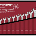 Производитель: Thorvik Модель: W1S11TB - Набор: 11 шт - Ключи: рожковые - Хранение: чехол/сумка Описание