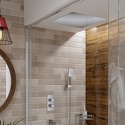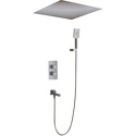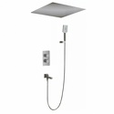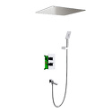 Устройство: душевая система • Смеситель: термостатический • Ручной душ (душевая лейка): размер 80 мм, настройки 3 шт • Верхний душ (тропический): размер 500 мм, настройки 1 шт • Комплектация: ручной душ, верхний душ, смеситель, шланг, крепление ручного душа