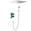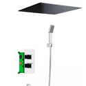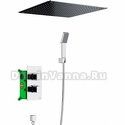 Устройство: душевая система • Смеситель: термостатический • Ручная лейка: настройки 1 шт • Верхний душ: размер 500 мм, настройки 1 шт • Комплектация: ручной душ, смеситель, шланг, крепление ручного душа