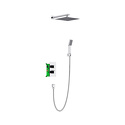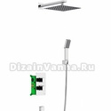 Устройство: душевая система • Смеситель: термостатический • Ручная лейка: настройки 1 шт • Верхний душ: размер 250 мм, настройки 1 шт • Комплектация: ручной душ, смеситель, шланг, крепление ручного душа