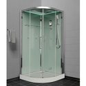 закрытая кабина • угловая • двери раздвижные • гидромассаж • баня • тропический душ • электронное управление • вентилятор • 100x100x220 см