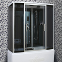 Закрытая кабина, полностенная, комбинированная с ванной, двери раздвижные, материал стенок: стекло, тропический душ, вертикальный гидромассаж, габариты (ШхВхД): 88x220x140 см
