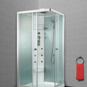 Закрытая кабина, полностенная, левосторонняя, двери раздвижные, материал поддона: акрил, материал стенок: стекло, тропический душ, вертикальный гидромассаж, габариты (ШхВхД): 85x230x110 см