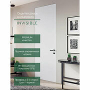 27 416 руб. 45 000 руб. В магазин Дверь межкомнатная скрытая Леском "INVISIBLE", МДФ, распашная, глухая, 900x2000 мм, 38 мм черный профиль с 4-х сторон