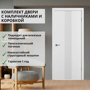 Нет бренда Дверь межкомнатная Экошпон (Эмалит, матовый белый), 60х200 см, царговая, мдф, универсальная сторона открывания (комплект: полотно + коробка 2,5 шт, + наличник 5 шт.)