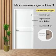 19 215 руб. 38 000 руб. В магазин ВДК Межкомнатная дверь Line 2 цвет: белый размер: 800x2000 мм (комплект: полотно + коробочный брус + наличники)