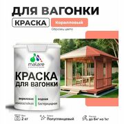 5 197 руб. В магазин Резиновая краска для вагонки Malare для дерева, для фасадов и интерьера с антисептическим эффектом, быстросохнущая, без запаха, полуглянцевая, коралловый, 2 кг