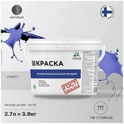 5 766 руб. В магазин Краска Malare Professional фасадная по дереву, бетону и штукатурке, для камня и кирпича, без запаха, матовая, индиго, (2.7л - 3.9кг)