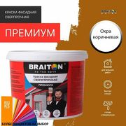 Краска ВД фасадная BRAITON Премиум Сверхпрочная 2,5 кг. Цвет Охра коричневая RAL 8001 для наружных и внутренних работ для дерева по бетону, для минеральных поверхностей и штукатурке,
