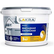 Краска латексная Лакра фасадная моющаяся матовая белоснежный 3 л 3 кг