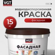 Краска водно-дисперсионная, VGT, акриловая, фасадная, влагостойкая, матовая, супербелая, 15 кг