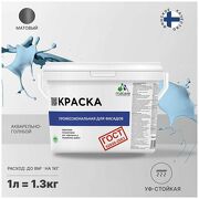 Краска Malare "ГОСТ" фасадная по дереву, бетону и штукатурке, для камня и кирпича, без запаха матовая, акварельно-голубой, (1л - 1.3кг)