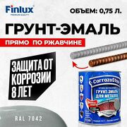 1 027 руб. В магазин Универсальная грунт-эмаль 3в1 по металлу и ржавчине Finlux F-148, глянцевая, ral 7042, 0,75 л