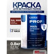 1 051 руб. В магазин Эмаль для пола по бетону 0.8 кг , оксид красный RAL 3009 , лакра PROF IT
