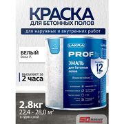 Эмаль для бетонных полов белая матовая 2.8 кг , быстросохнущая , лакра PROF IT