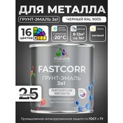 РасКраС Грунт-эмаль по ржавчине 3 в 1 Malare FastCorr краска для металла, антикоррозионная износостойкая быстросохнущая RAL 9005, черный, матовая, 2,5 кг.